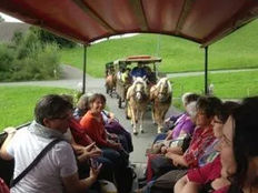 Unser traditioneller Gesellschaftswagen mit 2er- & 3er-Gespann bietet Platz für bis zu 16 Personen und ist ideal für gesellige Ausfahrten, Feiern oder besondere Anlässe. Komfortabel ausgestattet und von drei Pferden gezogen, verbindet er nostalgischen Charme mit einem sicheren und entspannten Fahrerlebnis.
